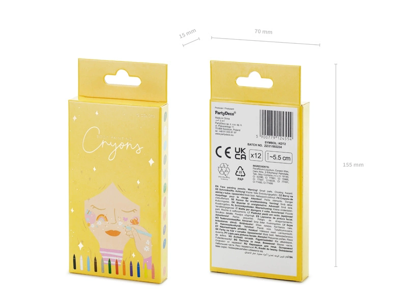 Nie czekaj dłużej i dodaj ten zestaw kredek do malowania twarzy do swojego koszyka. Dzięki nim każda impreza nabierze wyjątkowego charakteru i stanie się niezapomnianym wydarzeniem pełnym kolorów!