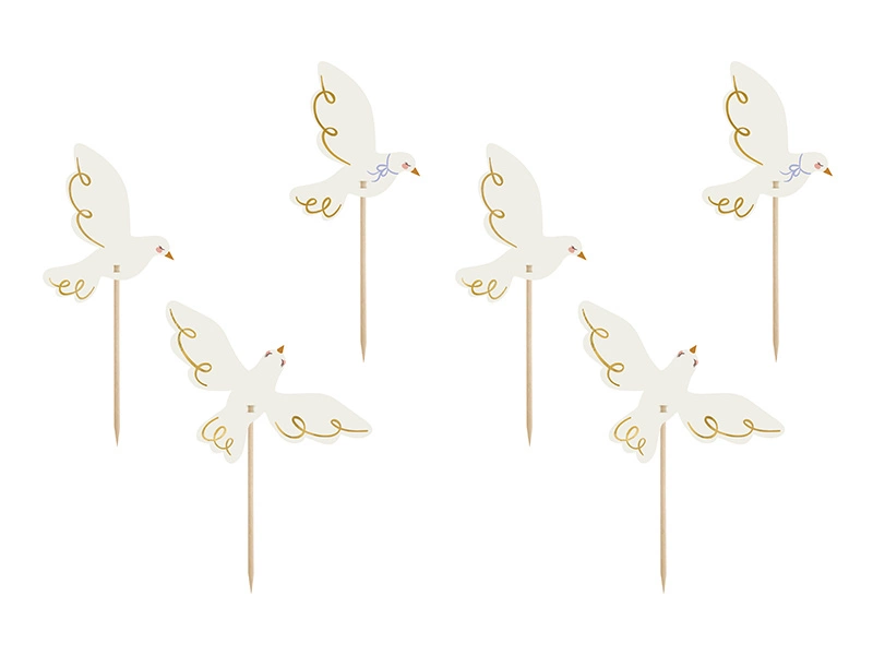 Dekoracje do muffinek - Gołębie, 14.5 cm, mix (1 op. / 6 szt.)