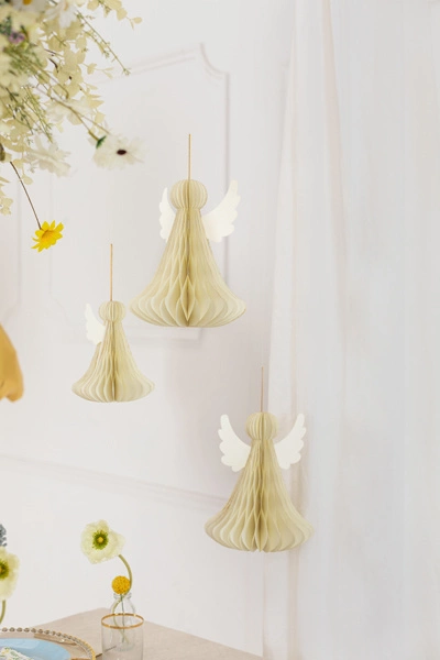 - Dekoracja papierowa honeycomb Aniołek w kolorze kości słoniowej, wysokość ok. 24 cm.