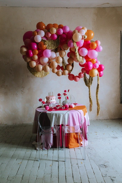 - Użyj balonów z łącznikiem do stworzenia girlandy nad stołem z przekąskami lub nad wejściem, aby przywitać gości.