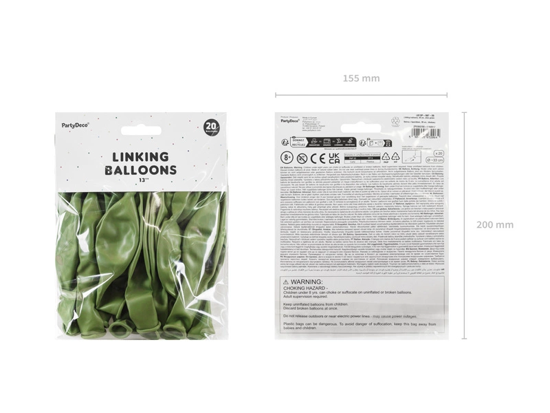Wprowadź odrobinę elegancji i stylu na każdą imprezę z naszymi balonami z łącznikiem w kolorze oliwkowym. Doskonałe na wesela, wieczory panieńskie, urodziny, Halloween, baby shower, Boże Narodzenie, Walentynki i wiele innych okazji. Te balony o średnicy 33 cm (13'') nie tylko zachwycają wyglądem, ale również są praktyczne dzięki łącznikom, które umożliwiają tworzenie efektownych dekoracji.