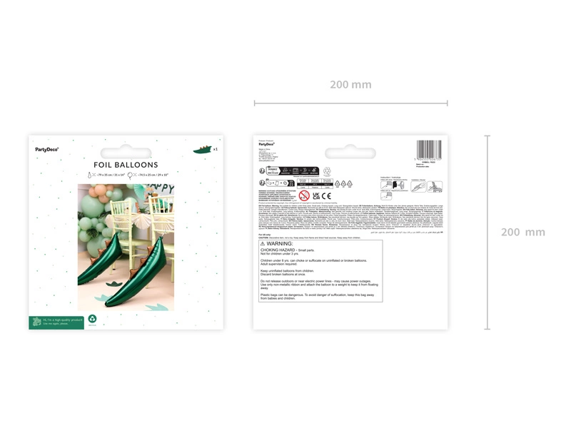 Wprowadź wyjątkowy element do swojej imprezy z balonem foliowym w kształcie ogona dinozaura! Ten barwny balon o wymiarach 79x35 cm przed napompowaniem i 74,5x25 cm po napompowaniu, z pewnością przyciągnie uwagę gości i doda zabawy każdemu wydarzeniu. Idealny na urodziny, baby shower, czy tematyczne przyjęcia.