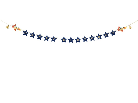 - Baner Samoloty z napisem ''Happy Birthday'' wykonany z papieru z dwoma frędzlami w kolorze złotym, mix kolorów. Wysokość ok. 13 cm, długość sznurka ok. 3 m. Produkt do samodzielnego złożenia.