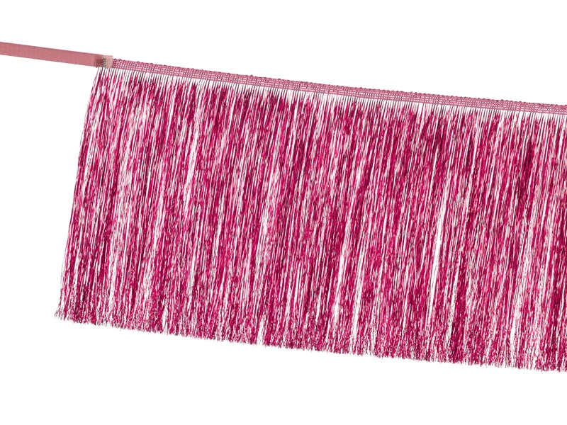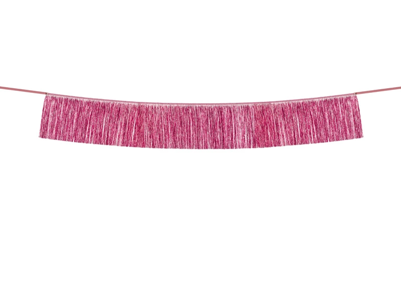 - Girlanda frędzle w kolorze różowym, wysokość ok. 20 cm, szerokość ok. 135 cm.