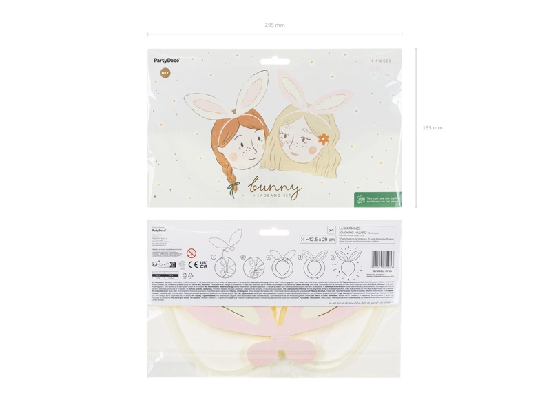 - Zestaw 4 opasek w kształcie uszu królika, mix kolorów. Wymiary ok. 12.5 x 29 cm. Produkt do samodzielnego złożenia (1 op. / 4 szt.)