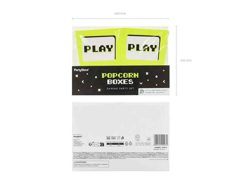 - Pudełka na popcorn Play, mix kolorów, wymiary po złożeniu ok. 7 x 7 x 12 cm. (1 op. / 6 szt.)