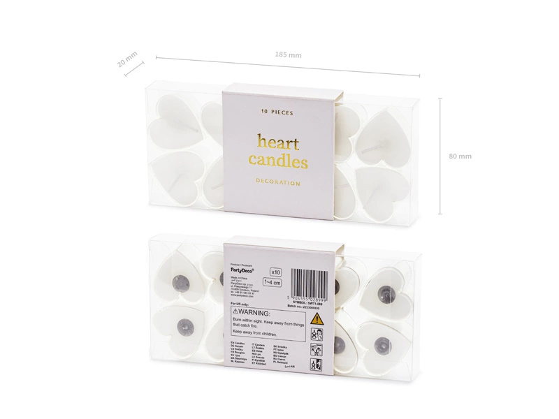 - Świeczki podgrzewacze w kształcie serca w kolorze białym, wielkość ok. 4 cm. (1 op. / 10 szt.)
