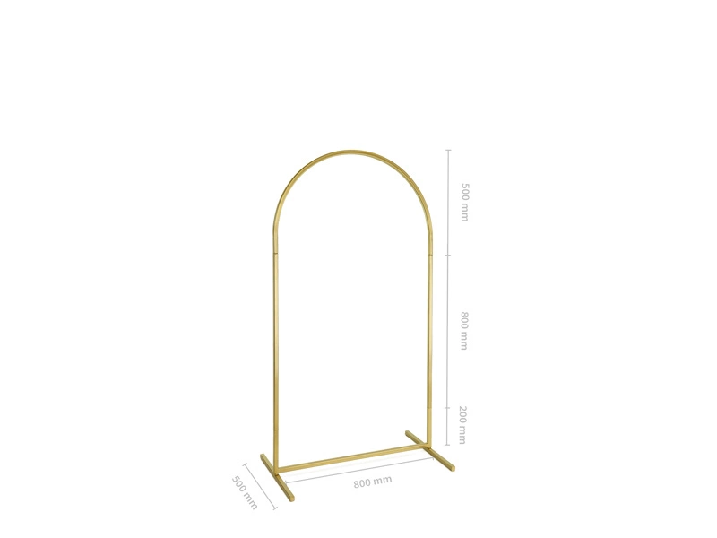 - Stojak na tło w kształcie łuku, wykonany ze stali w kolorze złotym, szerokość po złożeniu 80 cm, wysokość 150 cm. Produkt łatwy w montażu, po złożeniu stanowi stabilną konstrukcję. Nadaje się do wielokrotnego użycia, idealny do profesjonalnego zastosowani