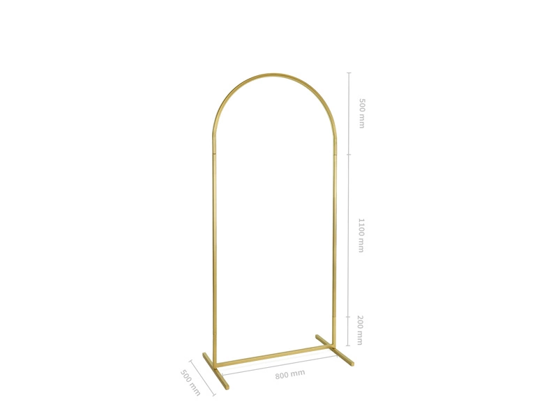 - Stojak na tło w kształcie łuku, wykonany ze stali w kolorze złotym, szerokość po złożeniu 80 cm, wysokość 180 cm. Produkt łatwy w montażu, po złożeniu stanowi stabilną konstrukcję. Nadaje się do wielokrotnego użycia, idealny do profesjonalnego zastosowani