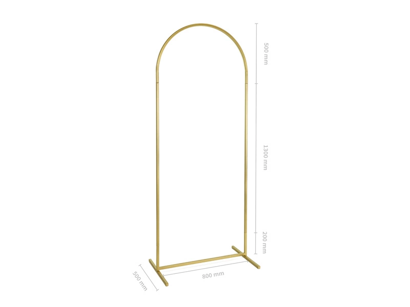 - Stojak na tło w kształcie łuku, wykonany ze stali w kolorze złotym, szerokość po złożeniu 80 cm, wysokość 200 cm. Produkt łatwy w montażu, po złożeniu stanowi stabilną konstrukcję. Nadaje się do wielokrotnego użycia, idealny do profesjonalnego zastosowani