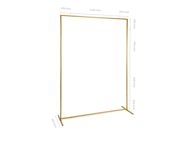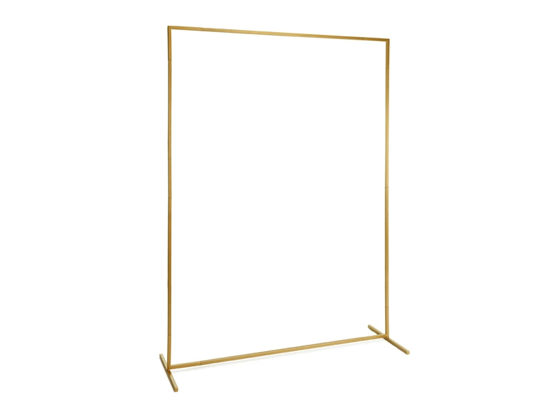 - Stojak na tło w kształcie ramki, wykonany ze stali w kolorze złotym, szerokość po złożeniu 150 cm, wysokość 200 cm. Produkt łatwy w montażu, po złożeniu stanowi stabilną konstrukcję. Nadaje się do wielokrotnego użycia, idealny do profesjonalnego zastosowa