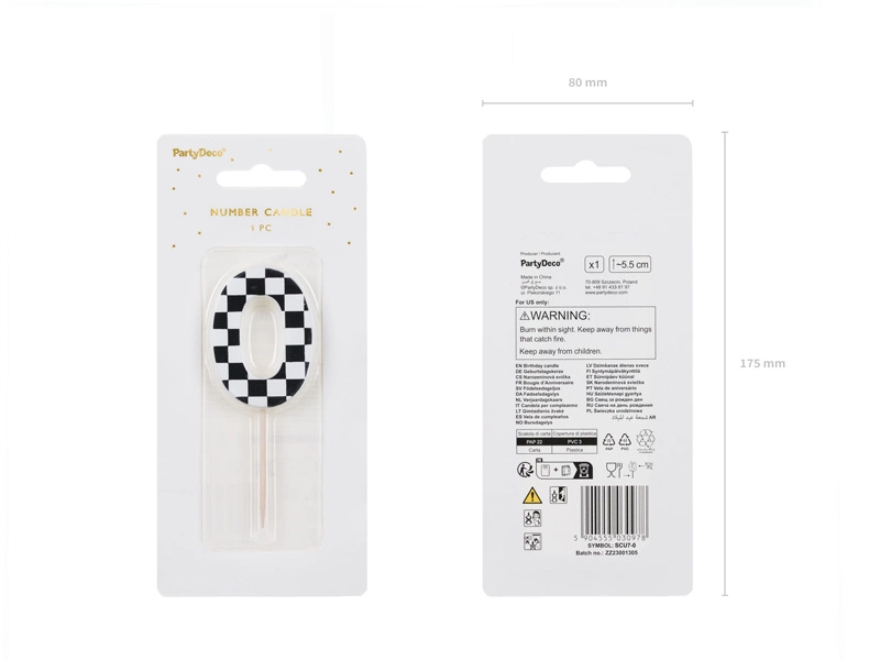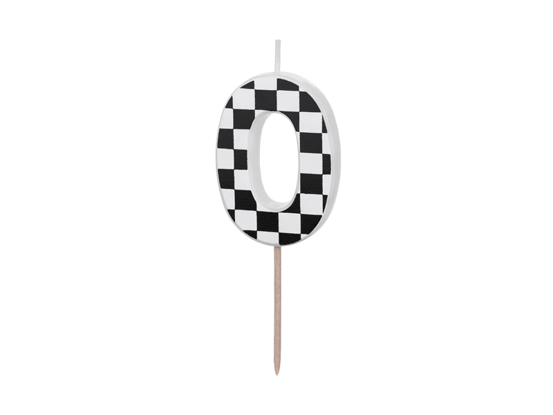 - Świeczka urodzinowa Cyferka 0 ze wzorem szachownicy, rozmiar ok. 5.5 cm.