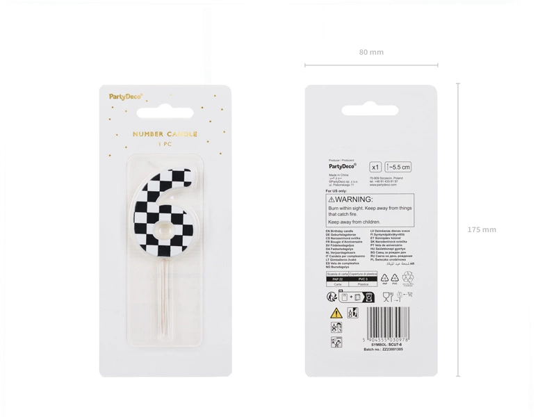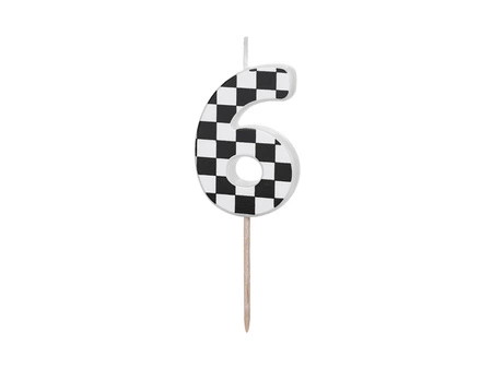 - Świeczka urodzinowa Cyferka 6 ze wzorem szachownicy, rozmiar ok. 5.5 cm.