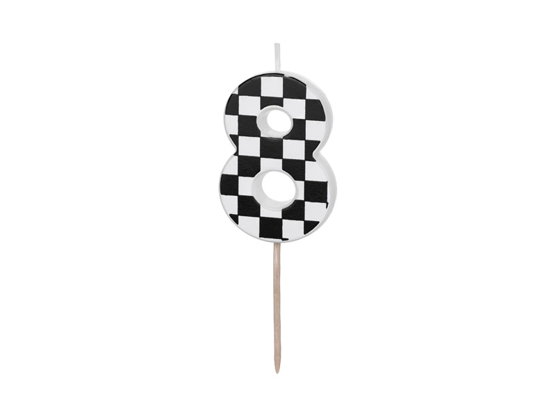 - Świeczka urodzinowa Cyferka 8 ze wzorem szachownicy, rozmiar ok. 5.5 cm.