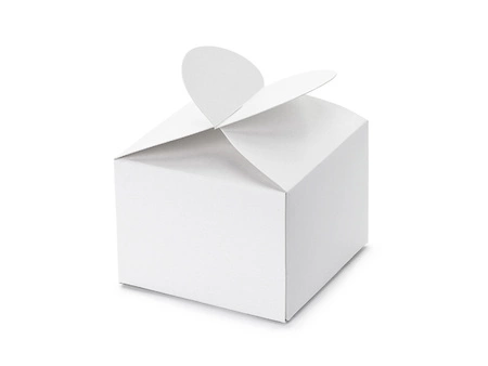 - Pudełeczka w kolorze białym, z zamknięciem kształcie serca, wymiary po złożeniu ok. 6 x 5 x 6 cm (1 op. / 10 szt.)