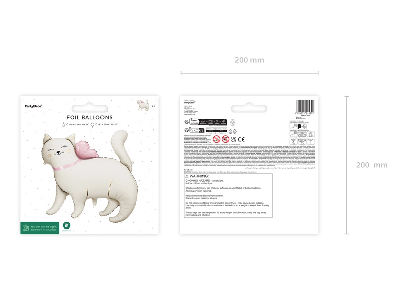 - Balon foliowy w kształcie kotka, wym ok. 83 x 77 cm. Do napompowania powietrzem i helem. Zestaw zawiera słomkę