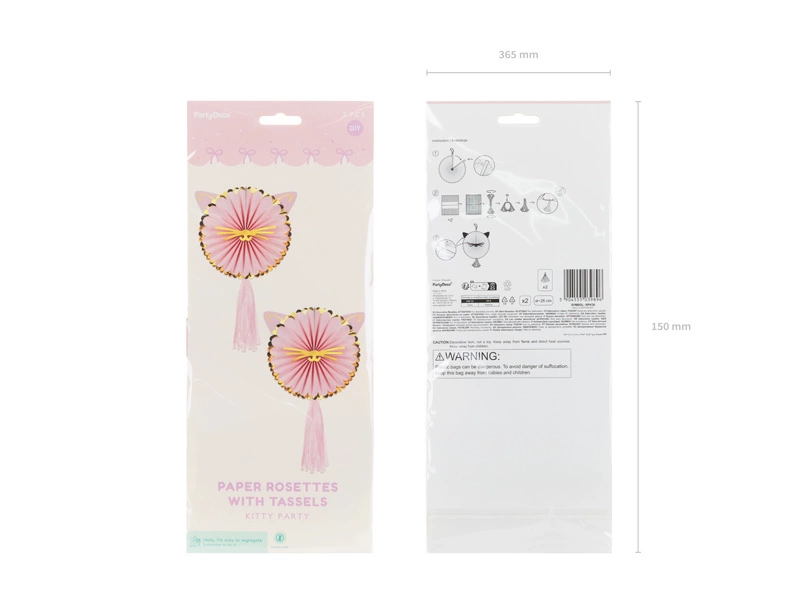 Chcesz dodać wyjątkowego uroku swojej imprezie? Nasze rozety dekoracyjne Kotki są idealnym rozwiązaniem! Te kolorowe rozety z uszkami i frędzlami doskonale sprawdzą się na różnorodnych wydarzeniach, takich jak urodziny, baby shower, wieczory panieńskie, a nawet Halloween. W zestawie znajdziesz dwie rozety o średnicy 26 cm, które z pewnością przyciągną uwagę gości i wprowadzą radosny nastrój.