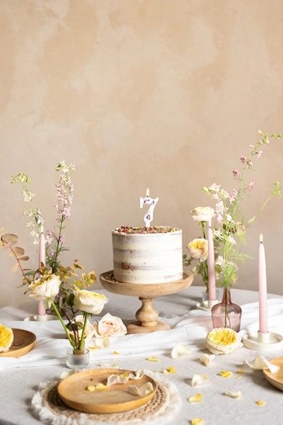 Pro Tip: Aby uzyskać jeszcze bardziej efektowny wygląd, otocz świeczkę małymi kwiatkami lub konfetti w kolorach pasujących do motywu imprezy.