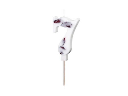 Świeczka urodzinowa Cyfra ''7'', biała z płatkami kwiatów, 8 cm