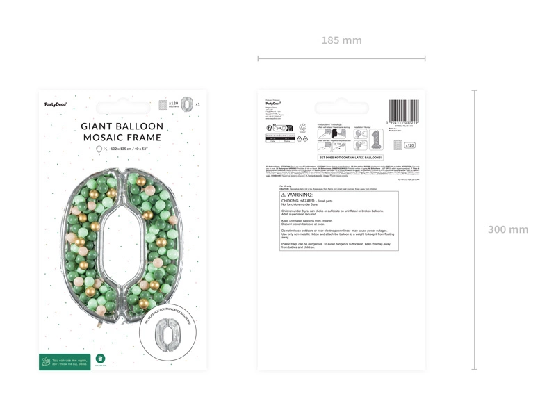 - Forma Cyfra '0', rozmiar ok. 126 cm. do wypełnienia balonami lateksowymi. Nowy trend w dekoracji przyjęć urodzinowych i rocznic. Produkt DIY do samodzielnego złożenia i wypełnienia powietrzem. Forma w kolorze błyszczącego srebra.