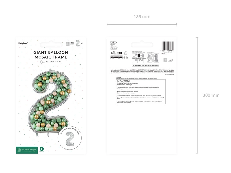 Rozświetl każdą uroczystość z naszą formą w kształcie cyfry "2"! Doskonała na urodziny, rocznice i inne szczególne wydarzenia. Forma o imponującej wysokości 126 cm, w eleganckim, błyszczącym srebrze, to najnowszy hit w dekoracjach imprezowych. Produkt DIY, który można łatwo złożyć i wypełnić powietrzem.