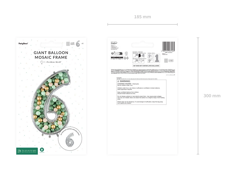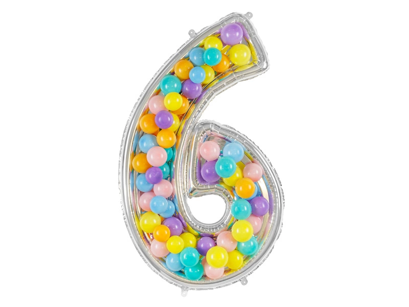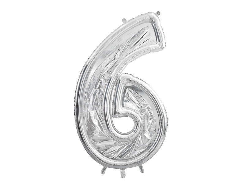 - Forma Cyfra '6', rozmiar ok. 126 cm. do wypełnienia balonami lateksowymi. Nowy trend w dekoracji przyjęć urodzinowych i rocznic. Produkt DIY do samodzielnego złożenia i wypełnienia powietrzem. Forma w kolorze błyszczącego srebra.
