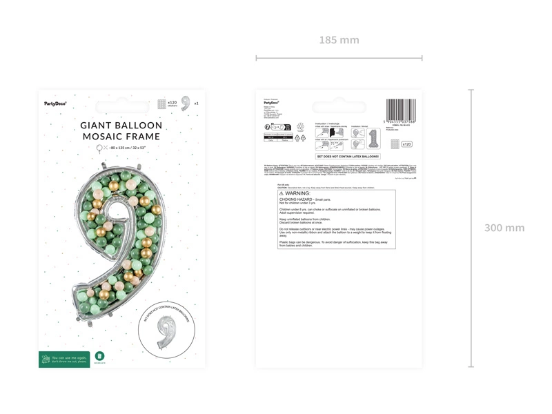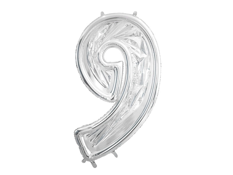 - Forma Cyfra '9', rozmiar ok. 126 cm. do wypełnienia balonami lateksowymi. Nowy trend w dekoracji przyjęć urodzinowych i rocznic. Produkt DIY do samodzielnego złożenia i wypełnienia powietrzem. Forma w kolorze błyszczącego srebra.