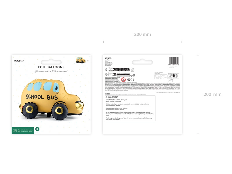 - Stojący balon foliowy Autobus, mix kolorów. Wymiary przed napompowaniem ok. 46,5x76,5 cm, wymiary po napompowaniu ok. 66x36 cm. Do napompowania powietrzem. Zestaw zawiera słomkę.