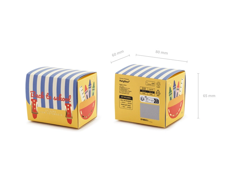 - Naklejki Szkoła, mix wzorów i kolorów, zestaw zawiera 3 blistry z naklejkami oraz 16 naklejek na zeszyt, wymiary ok 5,8x7,8 cm (1 op. / 19 szt.)