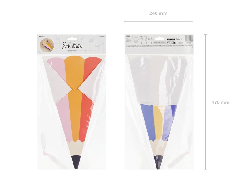 - Rożek na słodycze Kredka, mix kolorów, zestaw zawiera 1 rożek i tasiemkę. Rożek po złożeniu 14x39,7x12,5 cm