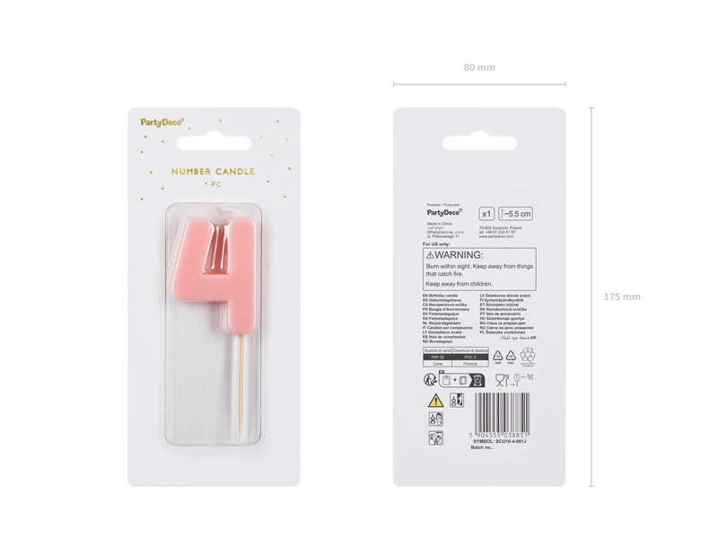 Wprowadź odrobinę magii do swojego urodzinowego tortu dzięki naszej świeczce w kształcie cyferki 4. Ta urocza świeczka w jasnoróżowym kolorze, o wysokości 5.5 cm, jest doskonałym dodatkiem na każdą imprezę urodzinową, dodając elegancji i radości do każdej uroczystości.