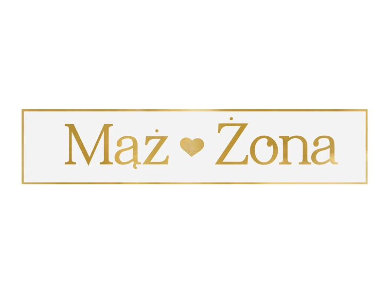 - Tablica rejestracyjna w kolorze białym ze złotym lustrzanym napisem Mąż & Żona, szerokość ok. 59 cm, wysokość ok.11,5 cm