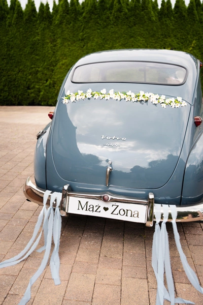 - Dodaje elegancji i wyjątkowości do ślubnego pojazdu