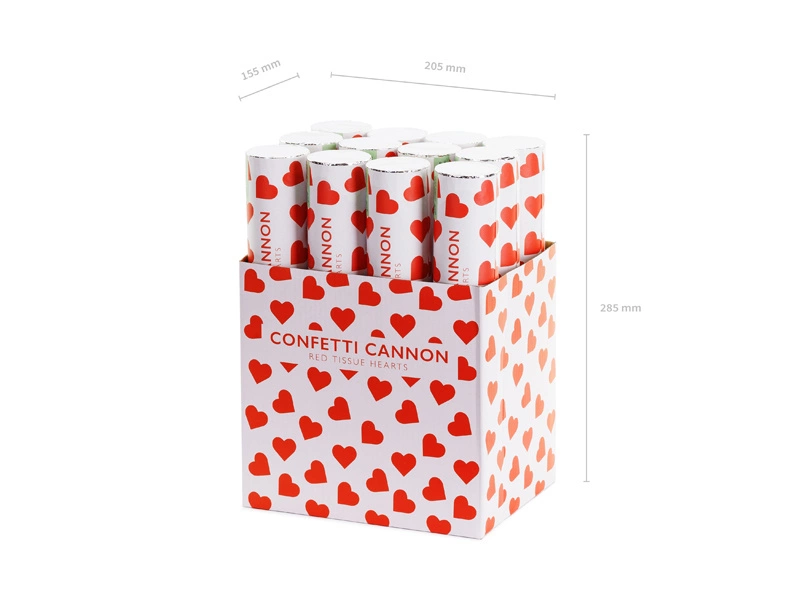 Chcesz dodać swojej imprezie wyjątkowego uroku? Wybierz tubę strzelającą bibułowymi sercami w intensywnym czerwonym kolorze! To idealne rozwiązanie na wesela, wieczory panieńskie, urodziny, walentynki i wiele innych okazji. Tuba o długości 28 cm zapewni niezapomniane chwile i wspaniałe efekty wizualne.