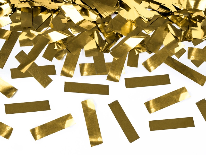 - Tuba strzelająca metalicznym konfetti w kolorze złotym, długość 28 centymetrów.