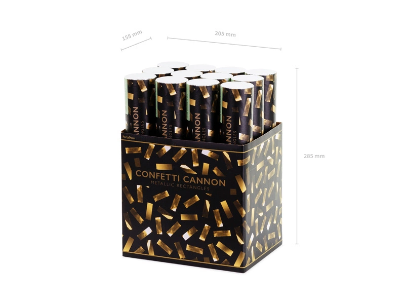 Chcesz, aby Twoja impreza była pełna blasku i elegancji? Nasza tuba strzelająca metalicznym konfetti w kolorze złotym to idealne rozwiązanie! Doskonała na wesela, wieczory panieńskie, urodziny, Halloween, baby shower, Boże Narodzenie, Walentynki i wiele innych okazji. Tuba o długości 28 centymetrów zapewni niezapomniane wrażenia i sprawi, że Twoje wydarzenie będzie wyjątkowe.