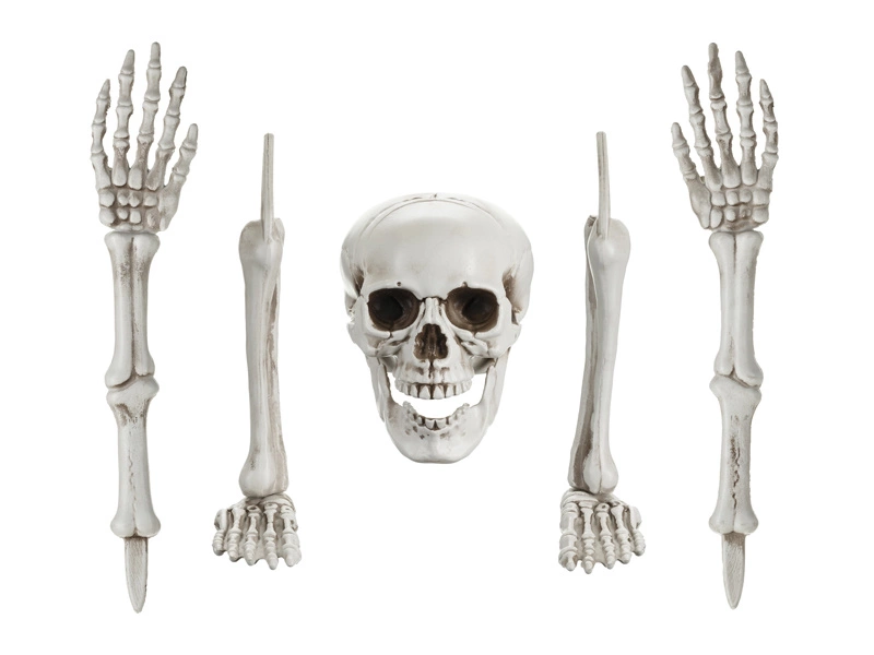 Wprowadź odrobinę grozy na swoją imprezę dzięki naszej dekoracji Kościotrup! Idealna na Halloween, ta realistyczna ozdoba składa się z pięciu oddzielnych elementów: czaszki, rąk i nóg. Można ją używać zarówno wewnątrz, jak i na zewnątrz, co czyni ją wszechstronnym dodatkiem do każdej imprezy tematycznej.