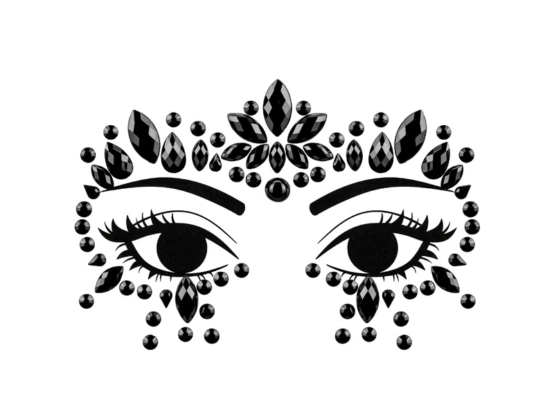 Dekoracja na twarz Kryształki, czarne, 15x9cm