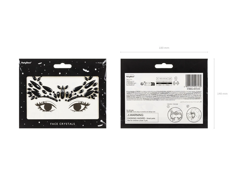 Przygotuj się na każdą imprezę z naszymi samoprzylepnymi kryształkami do dekoracji twarzy! Te stylowe, czarne kryształki o wymiarach 14.5x5.5 cm to doskonały dodatek na wieczór panieński, urodziny, Halloween, baby shower, Boże Narodzenie, Walentynki i wiele innych okazji. Łatwe w aplikacji i jednorazowego użytku, te kryształki z pewnością przyciągną wzrok i dodadzą wyjątkowego uroku Twojemu wyglądowi.