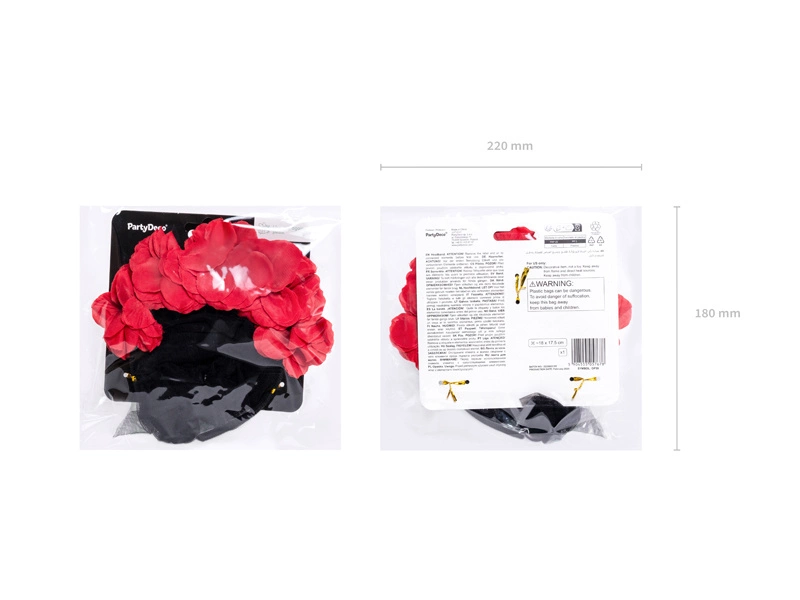 Wprowadź nutę elegancji i tajemniczości do swojego stroju dzięki naszej unikalnej opasce z czarnym welonem i czerwonymi różami. Ta niezwykła opaska to idealny dodatek na wieczór panieński, Halloween, czy romantyczne walentynki. Wymiary opaski to około 17.5 x 18 cm, a długość welonu wynosi około 50 cm. Wykonana w 100% z poliestru, zapewnia komfort noszenia przez cały wieczór.