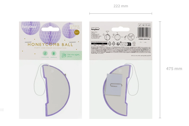 Dodaj odrobinę magii do swojej imprezy dzięki naszej liliowej kuli bibułowej! Ta elegancka dekoracja o średnicy 40 cm doskonale sprawdzi się na każdą okazję, od wesela po baby shower. Wykonana z wysokiej jakości bibuły, jest nie tylko piękna, ale i trwała, co pozwala na jej wielokrotne użycie. Montaż jest szybki i prosty dzięki dołączonemu spinaczowi.