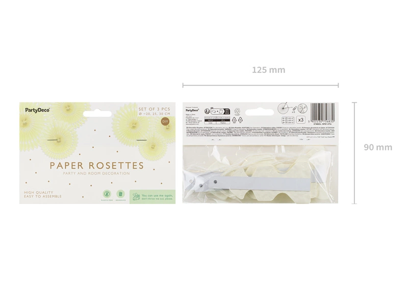 Wprowadź odrobinę wyrafinowania i klasy na swoje wydarzenie dzięki naszym subtelnym, jasnokremowym rozetom dekoracyjnym. Te urokliwe ozdoby z bibuły, dostępne w rozmiarach 20 cm, 25 cm i 30 cm, są doskonałym wyborem na wesela, wieczory panieńskie, urodziny czy baby shower. Ich łatwy montaż i możliwość wielokrotnego użycia sprawiają, że każda chwila stanie się niezapomnianym przeżyciem, które zachwyci Twoich gości.