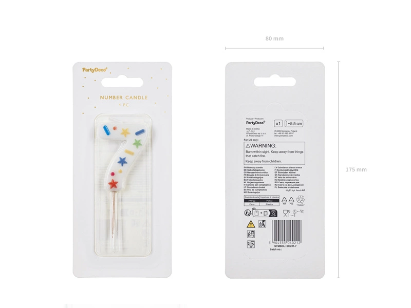 Spraw, aby każda urodzinowa impreza była niezapomniana dzięki świeczce w kształcie cyfry '7'. Ta stylowa świeczka w białym kolorze z kolorowym konfetti to idealny sposób na wyróżnienie tego szczególnego dnia. Doskonale nadaje się na torty urodzinowe, przyciągając uwagę i dodając radości każdej uroczystości.