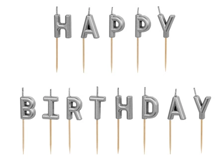 Świeczki urodzinowe Happy Birthday, 2.5 cm, srebrny (1 op. / 13 szt.)