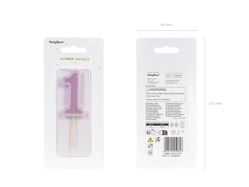 Wprowadź odrobinę magii na swoje przyjęcie dzięki naszej fioletowej świeczce urodzinowej w kształcie cyferki 1. Doskonała na pierwsze urodziny lub jako część większej liczby, ta świeczka stanie się wyjątkowym akcentem na Twoim torcie. Jej intensywny kolor i elegancki design przyciągną uwagę wszystkich gości.