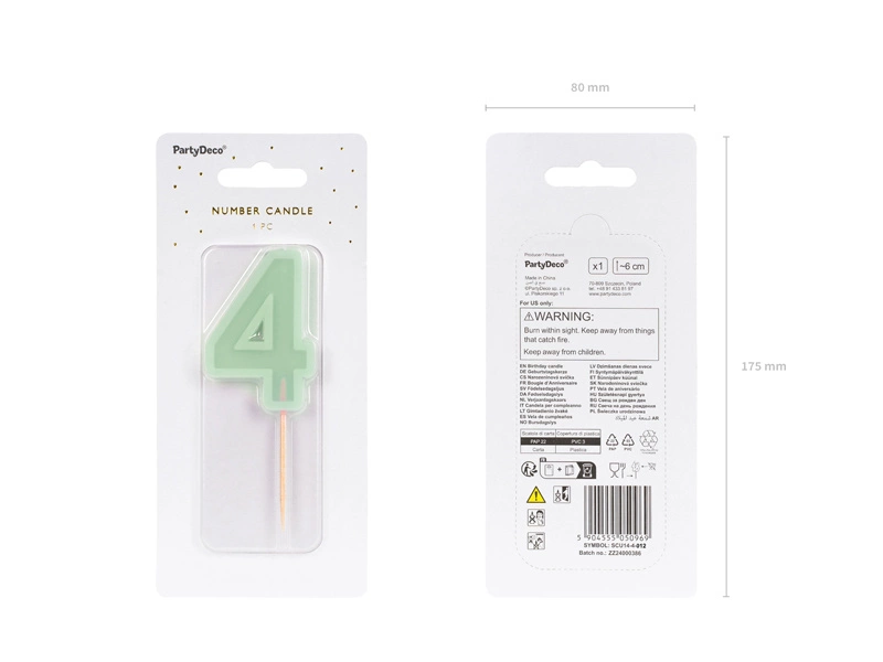 Wprowadź odrobinę magii na urodzinowy tort dzięki świeczce w kształcie cyferki 4. Jej soczysty zielony kolor przyciąga uwagę i tworzy radosną atmosferę na każdej imprezie. Doskonała na czwarte urodziny lub jako część większej liczby, ta świeczka stanie się kluczowym elementem Twojej dekoracji.