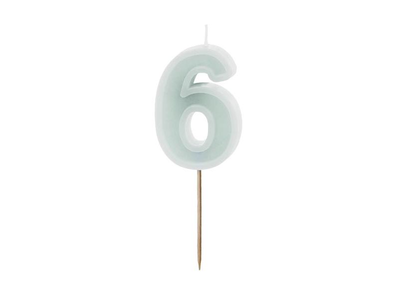 Świeczka urodzinowa Cyferka 6, jasna mięta, 6 cm