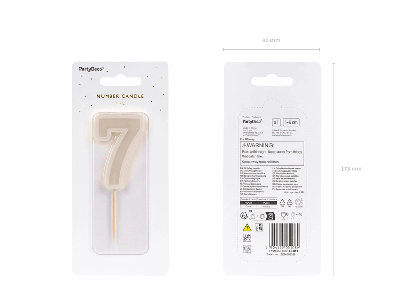 Dodaj niepowtarzalny akcent do swojego urodzinowego tortu dzięki naszej świeczce w kształcie cyferki 7. Ta stylowa świeczka w eleganckim beżowym kolorze, o wysokości 6 cm, doskonale komponuje się z każdą dekoracją, dodając uroku i klasy każdej imprezie. Idealna na urodziny, jubileusze czy inne wyjątkowe okazje.