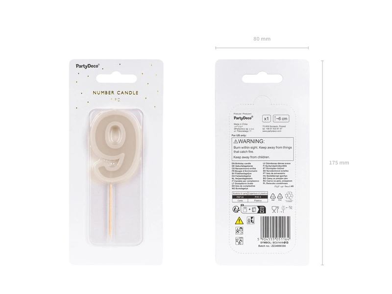 Wprowadź nutę wyrafinowania na swoje przyjęcie dzięki naszej świeczce urodzinowej w kształcie cyfry 9. Ta subtelna beżowa świeczka jest idealnym dodatkiem na urodziny, rocznice i inne wyjątkowe chwile, harmonijnie komponując się z każdą dekoracją. Jej wysokość, wynosząca około 6 cm, zapewnia doskonałą widoczność bez dominacji nad tortem.