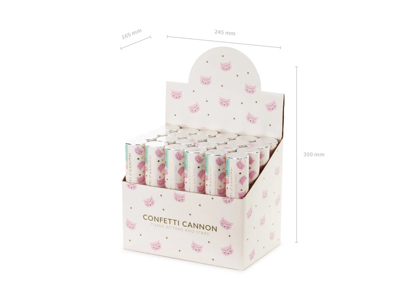 Dodaj odrobinę magii do swojej imprezy z naszą tubą strzelającą gwiazdkami i konfetti kotków! Ta wyjątkowa tuba o długości 20 cm jest idealna na każdą okazję, od wesel po urodziny, i zaskoczy Twoich gości wystrzałem metalizowanych gwiazdek oraz różowego konfetti kotków na odległość 5-8 metrów.